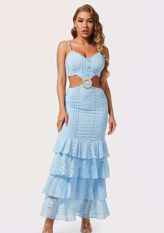 Mesh Maxi Dress Baby Blue